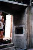 出入り口の中から見たところ 四角い穴は暖炉から落ちてくる灰を出すところです。