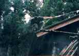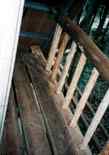 梁丸太の上に、13本の手すりの格子を組みます。 |