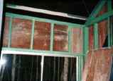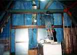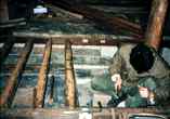 | 小屋に初めて電気がつき、1階の床板がほぼ貼れました。 |