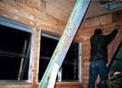 | 2階の壁貼りメインに行いました。出窓部分の壁はほぼ完成。屋根裏の屋根には天窓を入れる予定です。(天窓が3つ必要です。どなたか…譲って下さい…。) |