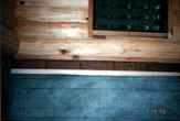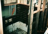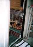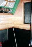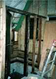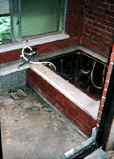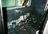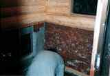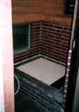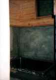 下水工事終了後。(98年途中経過参照)この日で正式にお風呂完成です。湯桶と、椅子が置かれ、なかなか風呂らしい。 |