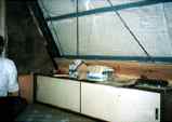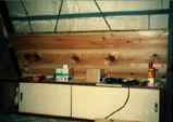 戸棚(再利用)を固定して、壁を貼っていきます。 |