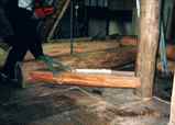ログの加工はすべて手作業。いくらチェンソーを使っていても、疲れます。 |