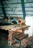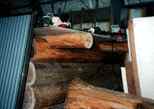 間仕切りに、テーブルの上に丸太を積んでいきます。 |