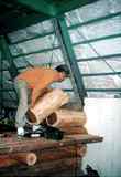 上に丸太をのっけるまで、ベニアを敷いて、テーブル代わり。 |