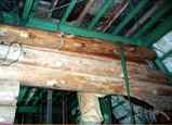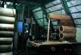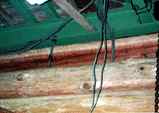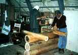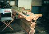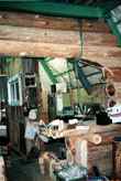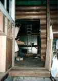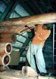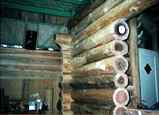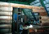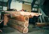 | テーブルと、間仕切りのログを組みました。屋根ができてからのログ積みはこのように積むことになります。天上までの最後の2〜3段を積むのが難しく、何回も積んだり下ろしたりで、大変だったのです。 |