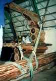 最後の丸太は半割にして、コードが通る部分と、ボルトの部分に切れ目を入れ、 |