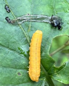 団体さんで居るのが多いハバチ幼虫なのに一匹だ。