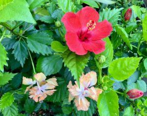 ハイビスカス・レッドはやはり花付きも良くて元気。