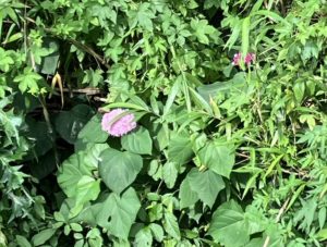 水路対岸のボタンクサギの小花が開いて大きなピンク色の花になった〜^0^