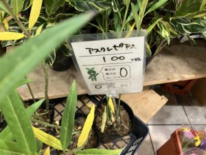 花屋さん覗いたが見切りにはなーんもない・・・・今日は坊主かな〜っと思ってたけど、「アスクレピアス 100円」に目が止まった〜^^