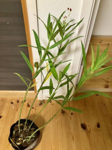 キョウチクトウの葉っぱに似てるような。。。いい感じの花の蕾が付いて、なんと100円とは・・・こりゃ、買いや!
