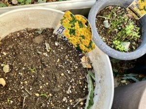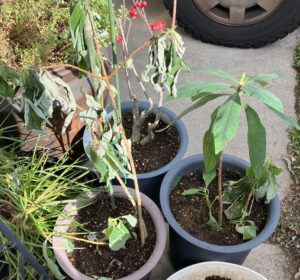 山小屋で引っこ抜いてきたミツマタを植木鉢に借り植えしてるが、なんか葉が枯れてきてる。