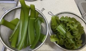 右「生茎わかめ」&左「生めかぶ」