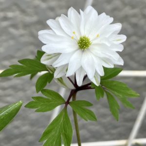 名札が「青花イチリンソウ」の苗の花が咲いたら白色花が咲いて、しかも八重咲の花だった〜@@