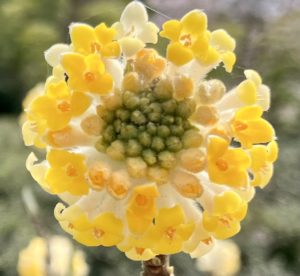 2年前に山から移植したミツマタの木に花がついていた〜^0^