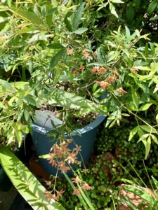 サマークリスマスブッシュのガクが赤くなる。花のようで可愛い。