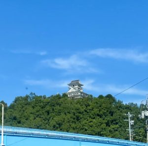 いつもは鳥取道から見てるだけなので取り敢えず撮ろうとしたけど、町中は電線避けてたらお城が山に隠れてしまった。