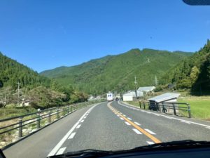 大規模林道に降りると青空〜〜絶好の行楽日和。