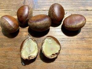 栗虫〜〜^0^ 10・19 kao · Posted on 2024年10月24日 先日収穫した栗を茹でて食べてみる。 半分に切ったら:::::::何と白い幼虫さんが出てきた。 クリシギゾウムシ幼虫だ。 俗に「栗虫」といい食べられるらしい。 ウチのじいちゃん曰く、「栗虫は栗食べて育つからうまいんや」っとよく言ってた。 さすが山育ち人間〜^_^ 茹でられた幼虫さんを取ってから栗をスプーンですくっていただきました〜〜(^ω^) 自分の植えた栗を10数年ぶりに〜〜さすが丹波栗!美味しい!