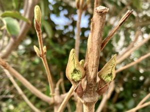 ピンク大手毬の花芽&雪割草〜^^