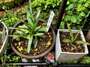 植え替え中に鉢の中で見つけた苗〜〜どっかでみたっけ?っと悩んでたが、今日思い出した〜ねじ花の葉っぱだった〜^0^