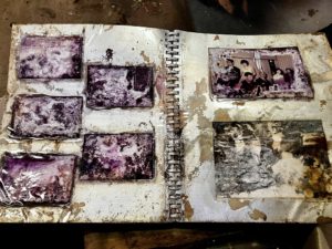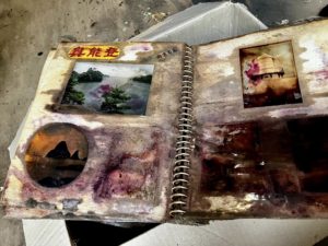 実家の雨漏りで濡れてしまってグチャグチャになったわたのアルバムを山小屋の暖炉で燃す。