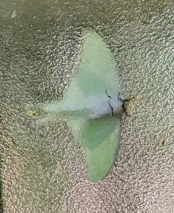 オオミズアオはまだ窓に張り付いていた〜(^。^)