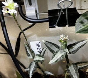 アボカドがすっごく伸びてる! 7・18 kao · Posted on 2025年7月19日 アボカドがすっごく伸びてる! 測ったら50cm~~@0@ 「原種アンスリューム・グラシレ 」の花の蕾?が大きくなってきた。 いや?これって実? 昨年は赤い実がついてたっけ? ”テラリューム”の中の「シルバー ジュエルオーキッド 宝石蘭・グッディエラ ロストラータ ‘Pla Dang’」の花〜^0^ 地味な花だ・・・