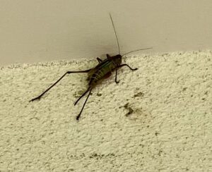 キリギリスモドキ?が庇の隅っこに避難中?