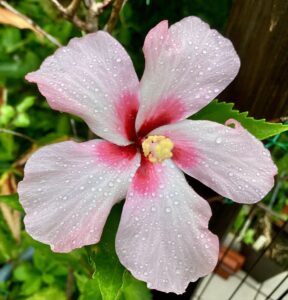 ピンクハイビスカスが一輪開花〜^0^ 8・7 kao · Posted on 2025年8月7日 朝7時ごろから雨が降り出した。 久々の雨〜〜めぐみの雨〜〜今日は水撒きしなくていい日〜ラッキー。 同じ降るならしっかりと植木鉢や地面に溜まるほどふってくれぇぇ〜〜^^; ピンクのハイビスカスの大きな花が開いてた〜^0^ 雨でダメにならないうちに〜っと小雨のうちにパチリ。 猛暑で暑さに強いハイビスカスも今回ばっかはヤバイかも〜っと思ってたのでホッとした〜 8・7ピンクハイビスカスが一輪開花〜