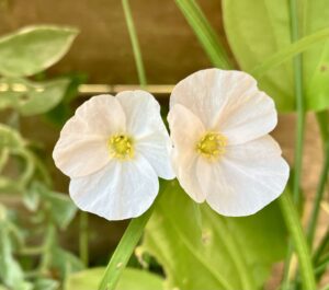 「ヒロハシャゼンオモダカ(広葉車前澤瀉)」の花が咲いた〜! 9・16 kao · Posted on 2025年9月22日 ”メダカ&水生植物の水瓶”の「ヒロハシャゼンオモダカ(広葉車前澤瀉)」の花が咲いた〜! 他のオモダカの花とはちょっと雰囲気が違っててなんか可愛い白い花だ〜^0^ 6〜7月ごろに咲く花らしいのに・・・・やっぱ狂い咲きかな? 同じ水生植物の「ウオーターバコパ」の小さな青い花も咲いてる〜@@