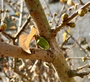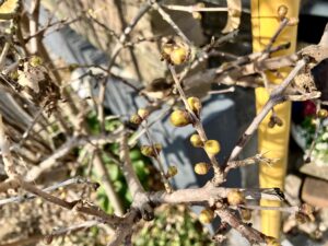 蝋梅、枝垂れ梅の蕾が少しふっくら〜^^