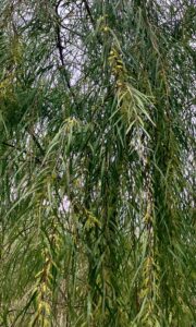 アカシア・コグナータが今年は高さ3m以上にまで育って、ちょうど柳のような風情になってる。
