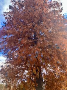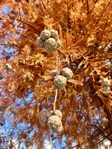 そしてもう一つ「????」なのが別名「ヌマスギ」と呼ばれるように池や沼の側に生えてるものだと思い込んでいたのに、コンクリートでびっちり覆われた場所で街路樹として植えられてるのも不思議で・・・・
