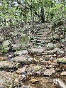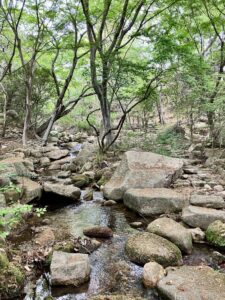 懐かしの沢〜^0^ 4・22 kao · Posted on 2026年4月26日2026年4月26日 池から下って、そのまま沢まで降りる。 ココはよくワンコ散歩にくっついてきた植物園内を流れる沢〜〜懐かしい〜^^ 確か去年はここから鉄門扉を開ければ植物園の中に入れたはず・・なんだけど・・・チェーンに厳重に鍵がかかってた・・・笑 しかたないのでしばらくベンチに座って休憩して、沢の音を聞きながらしばし体力を回復。 ベンチ周りもイノシシさん達がミミズ探してボコボコに嵐回ってた〜〜^ シナアブラギリの群生してる谷筋はここから500m歩く〜〜^^